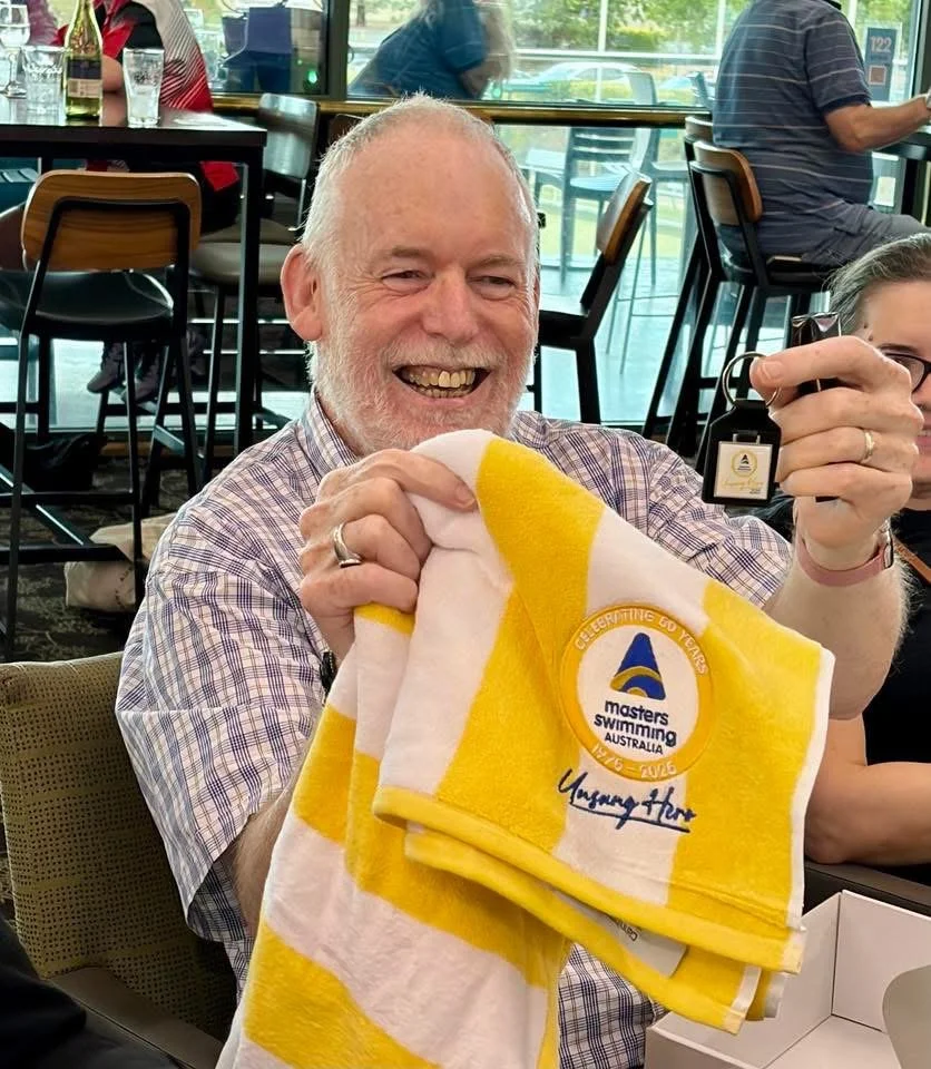 Peter Sharman received a very well-deserved MSA ‘Unsung Hero’ award last year. This was in recognition of the hours he has spent at swim meets supporting Ann, helping out, and doing jobs that help the events run smoothly. Many would have seen the hours he has spent on the medal table at NSW and National events - always patient and with a smile on his face as he hands out medals. We are lucky to have him as part of our club.